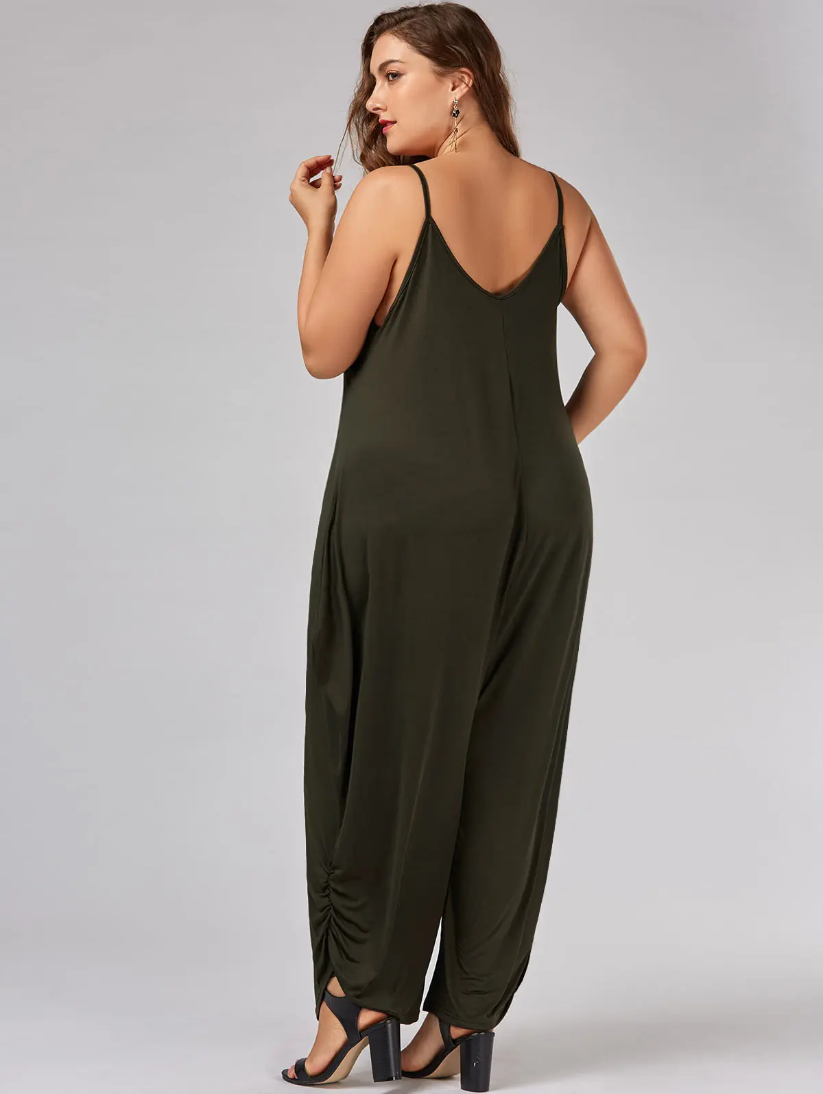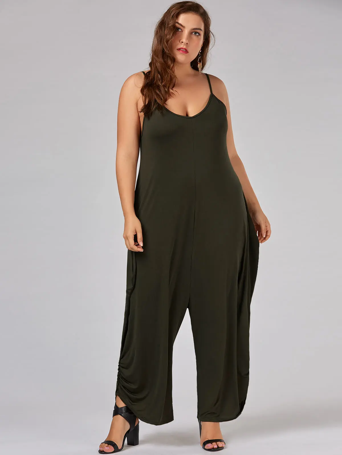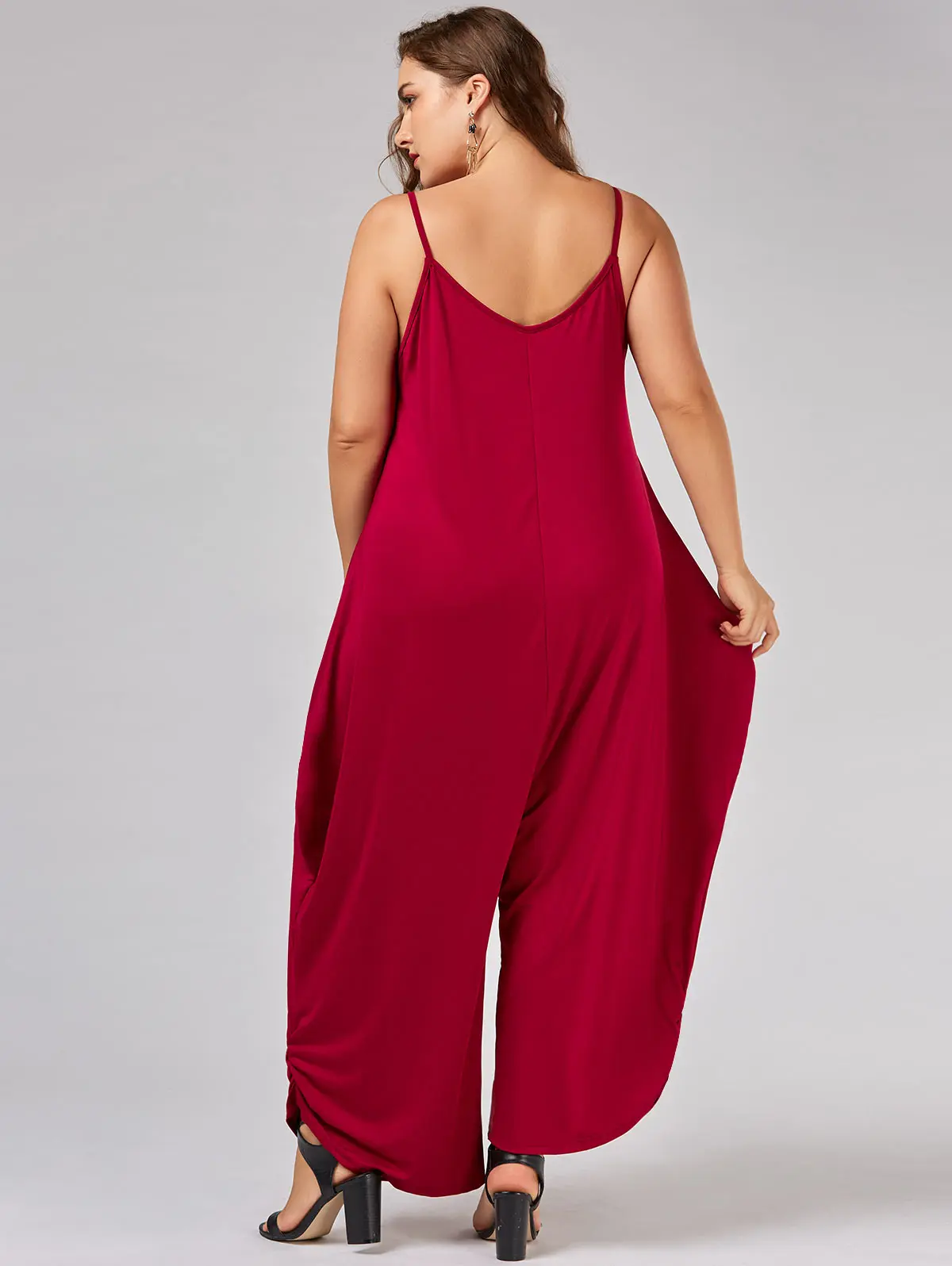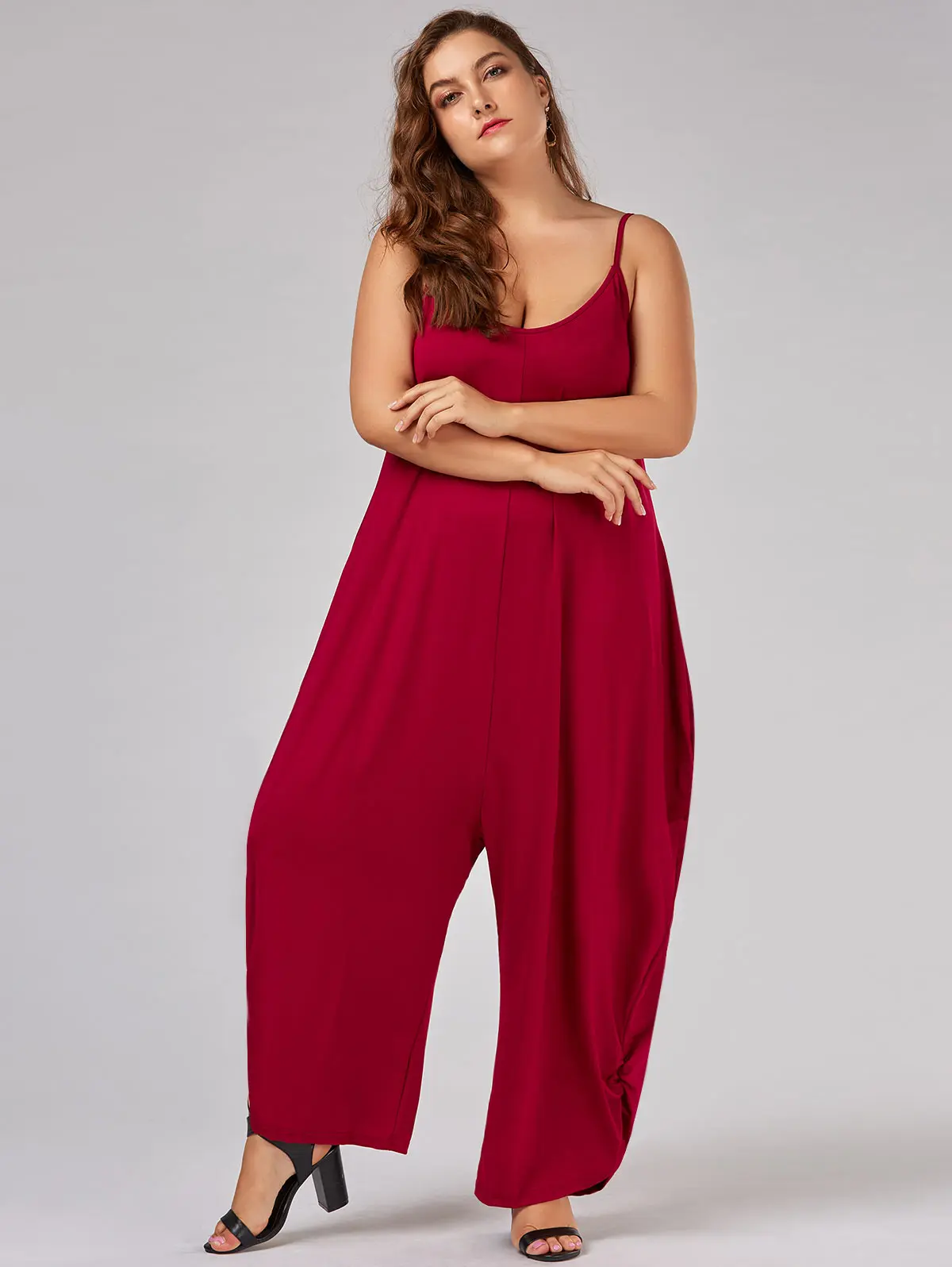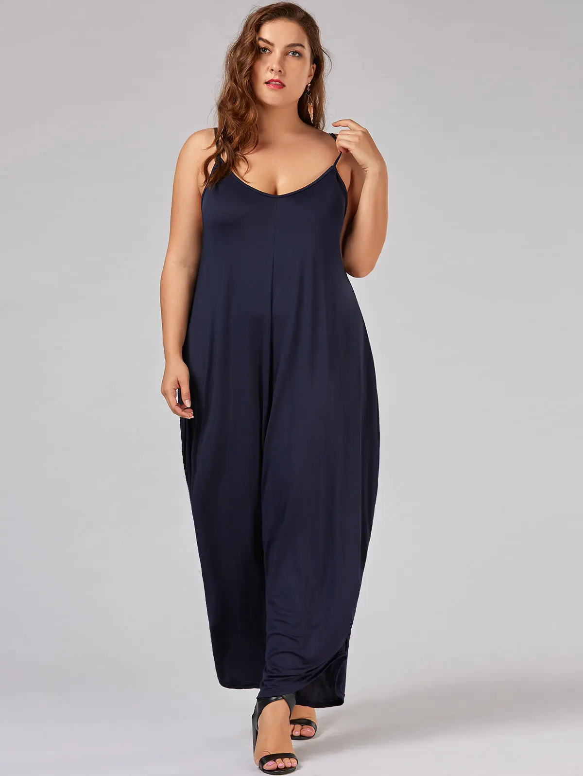 Model Number:Plus Size Low Cut Spaghetti Strap Baggy Jumpsuit