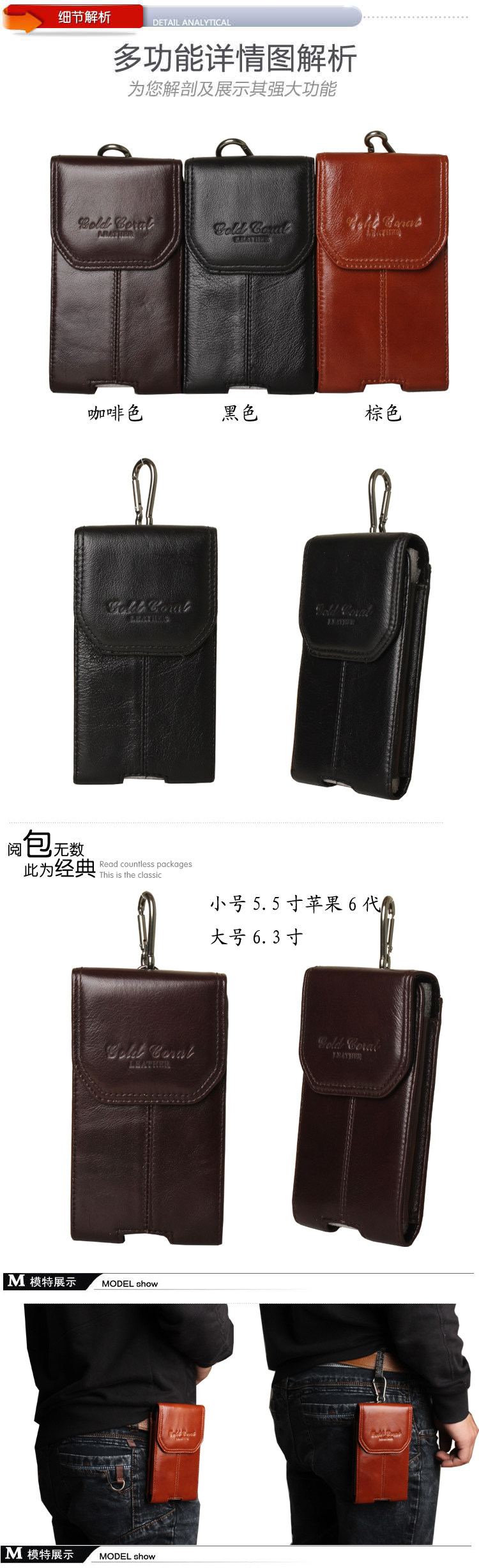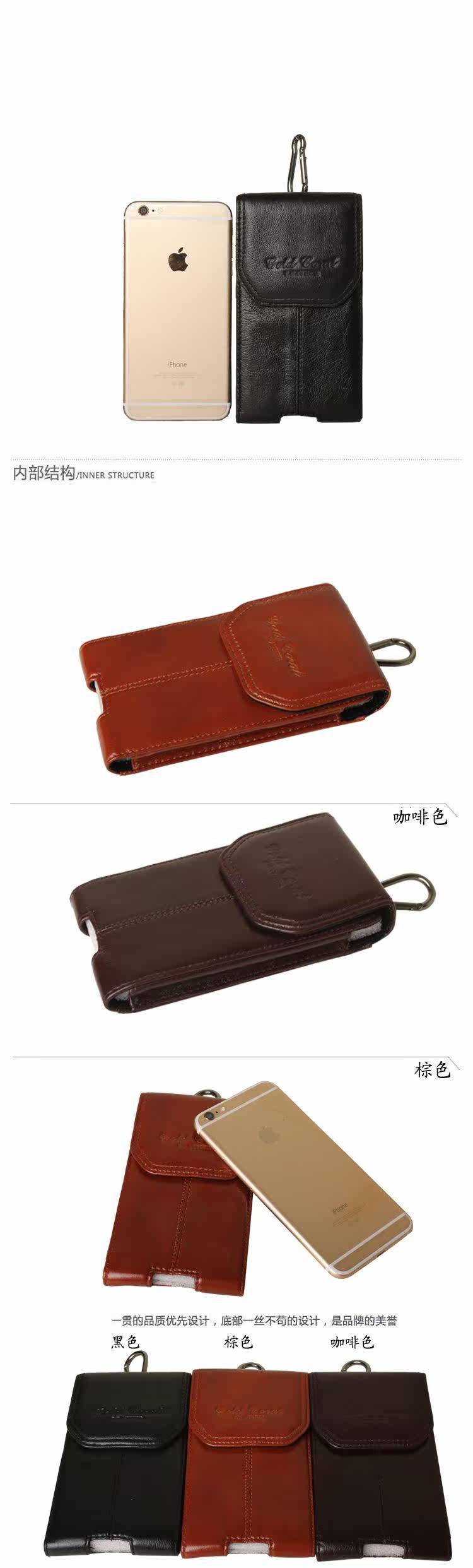 韩版牛皮苹果4.7/5.5/6.3寸手机腰包竖款薄款挂式小包男包潮真皮