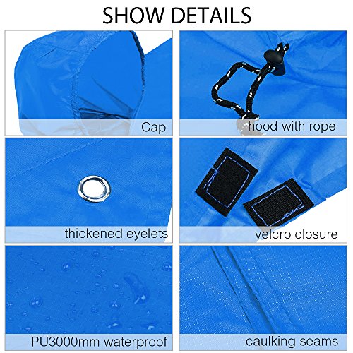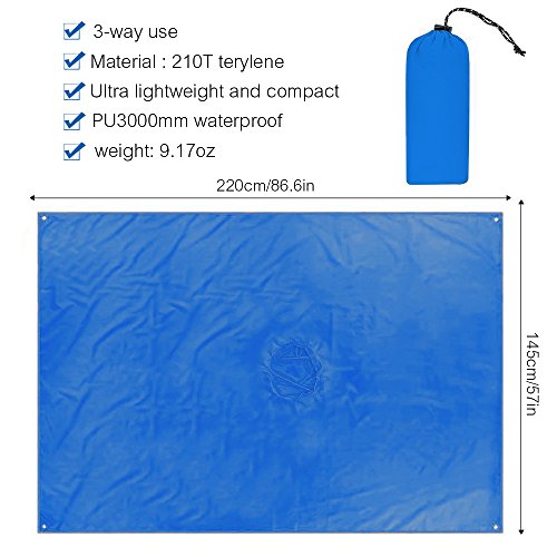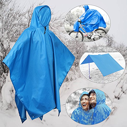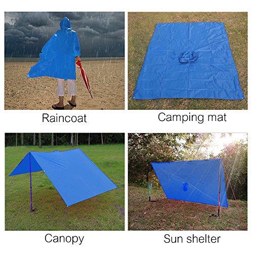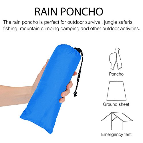 -. Feature : 3-IN-1 DESIGN: Upgrade version with unique design rain jacket, the 3 in 1 poncho can be used as rain coat, backpack cover or picnic blanket. / SUPER WATERPROOF: Made from 210 T high density polyester fabrics; all seams go through a caulking treatment; PU3000MM waterproof. / DURABLE & CONVENIENT: Thickened eyelets create enhanced durability; cuffs with Velcro on both sides ensure maximum comfort; cap margin with elastic rope for effective protection / LIGHTWEIGHT & PORTABLE : To store the emergency rain poncho in your car or bag as it's compact and easy to store. / MULTI FUNCTIONAL:The rain poncho perfect for various outdoor activities such as camping, hiking, backpacking, outdoor survival, fishing, traveling.