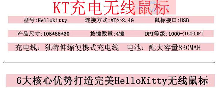 充电无线鼠标 自带充电无线静音卡通鼠标女生可爱无声粉色黑色Buyer take note- Pls use computer or laptop to charging the mouseThe receiver is located behind the mouse,