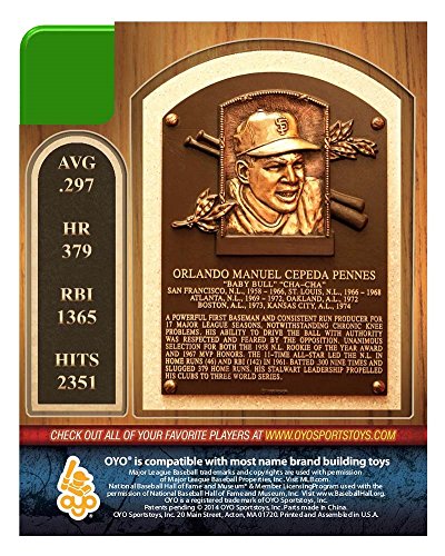 -. Feature : Each collectible minifigure comes complete with his uniform, a bat, ball, glove, team hat and stand / The custom OYO stand is great for displaying your figure and connects to all building brick / Each stand has a unique OYO DNA Number to identify your one of a kind sports toy / OYO Sports minifigures are officially licensed collectible minifigures designed to resemble your favorite MLB player and team / OYOs are also compatible with other notable building block toys such as , KNEX, Mega Blocks and more