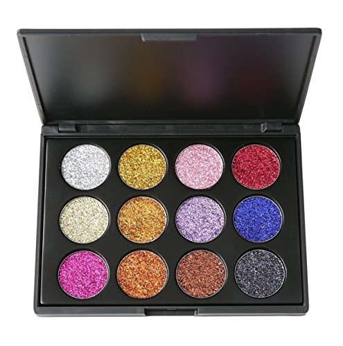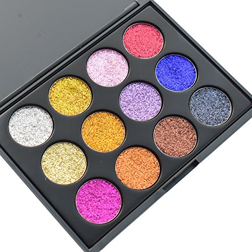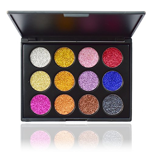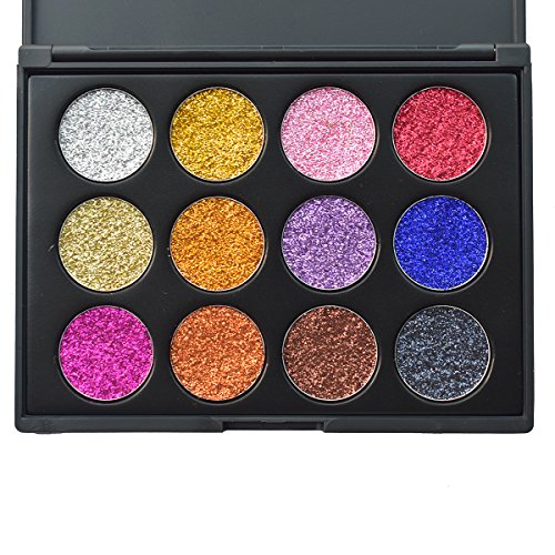 Glitter Eyeshadow Makeup Palette, Vodisa 12 color Pressed Powder Glitter Makeup Palette Long-Lasting Metallic Shimmer Eye shadow Pallet Eye Glow Highly...