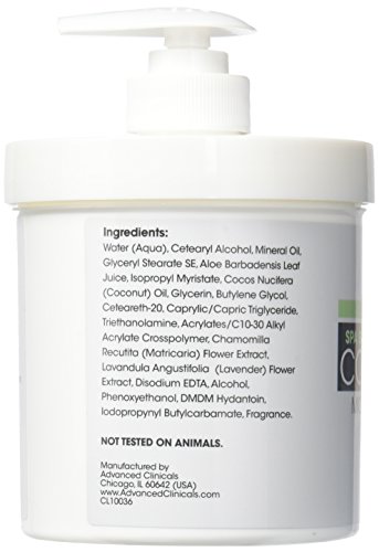 Advanced Clinicals Coconut Oil Cream. Spa size 16oz Moisturizing Cream. Coconut Oil for Face, Hands, Hair.