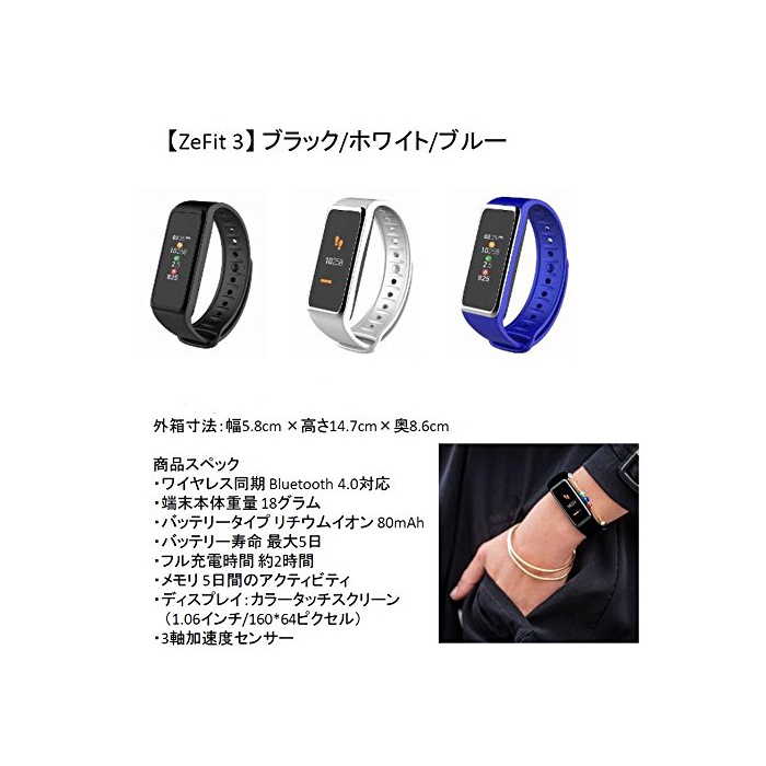 Mykronoz 스위스 디자인 활동량계 activity 트래커 거리계 칼로리 소비 측정 보수계-페도미터 음악 콘트롤러 【일본 정규 대리점】 ZeFit3 White KRZEFIT3-