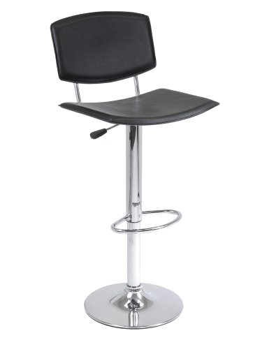 -. Feature : Lever-activated airlift system for height adjustment / Ideal for use in kitchen and dining area / Black PVC leather-like seat / Durable chrome metal base and foot rest / 18.6W x 18.9D x 35H inches