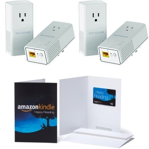 2-Pack of NETGEAR Powerline 1200 + Extra Outlet (PLP1200-100PAS) & 1 $10 Amazon.com Gift Card Bundle