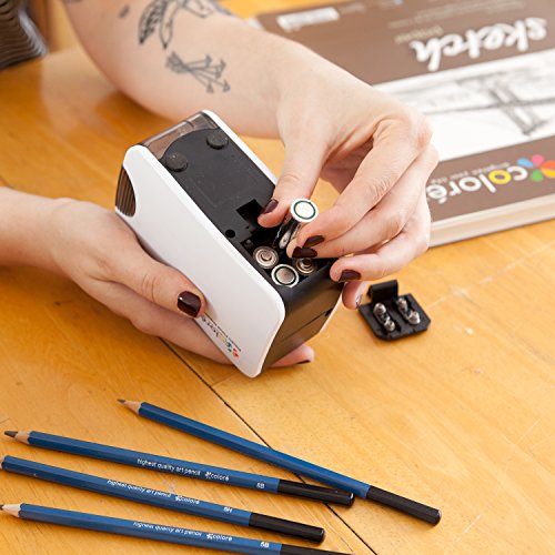 LIGHTWEIGHT AND PORTABLE Electric Sharpener with maximum efficiency and easy to use. Simply put your pencil into the sharpener's mouth opening for a few seconds and you'll get a nice sharp and pointy pencil tips which is great for drawing and sketching on your sketch pad or sketchbook, art canvas or drawing paper. Compact enough for students or teachers to bring to classroom.