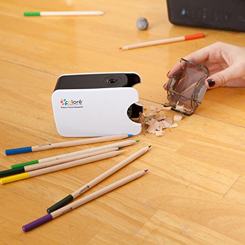 Colore Electric Pencil Sharpener For Colored / Graphite Lead Pencils - Battery / USB Powered Professional Sharpener - Great School & Office Supplies For Teacher, Kids and Adults - FREE Core Sharpener