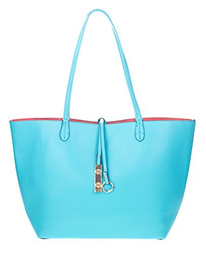 Features: reversible, change the way it looks by turning the tote inside out; high quality classic design tote with detachable pouch; decorative string with logo; 1 sunglass a1 cell phone and 1 wall zipper pocket in pouch.