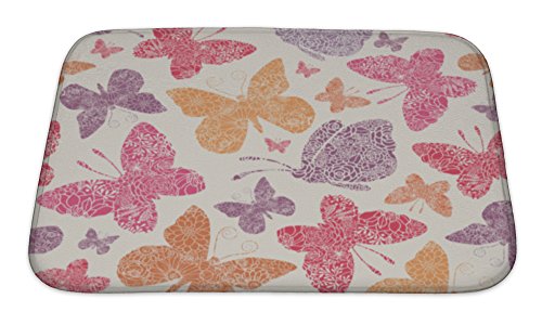 Gear New Floral Butterflies Pattern Bath Rug Mat No Slip Microfiber Memory Foam