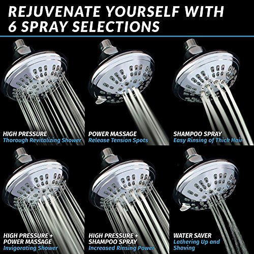 ►MULTIPLE MODE ADJUSTABLE SETTINGS – High pressure, water saver mode or power massage – the choice is yours. Featuring a total of six different spray settings including High Pressure, Power Massage, Shampoo Spray, High Pressure + Power Massage, High Pressure + Shampoo Spray, and for the eco-conscious, a Water Saver mode. Adjustable ball joint allows easy and flexible adjustment to achieve the perfect angle for your bath area.