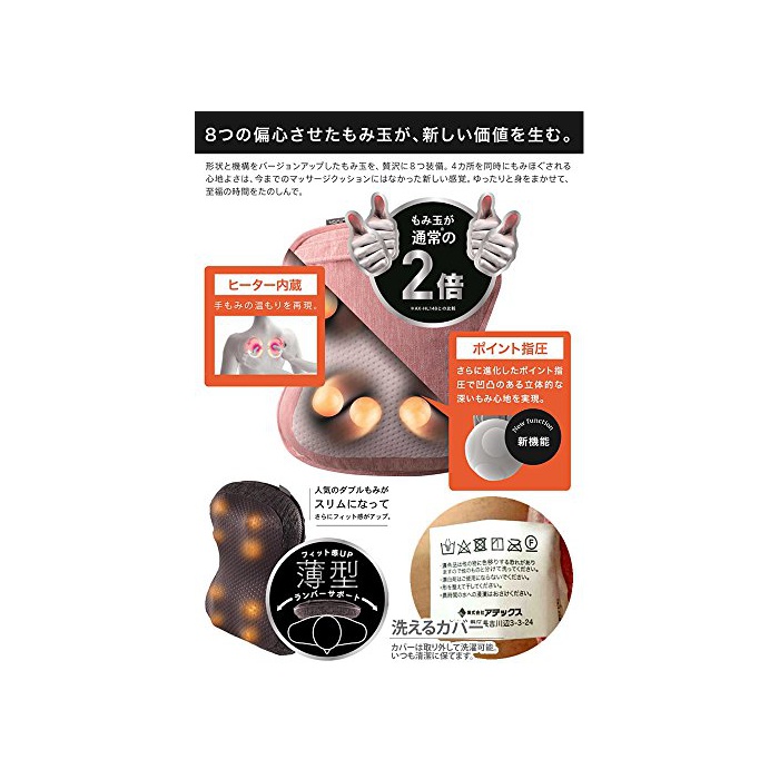 【세트】맛사지 쿠션 《아텟쿠스》 HCL258PK 《루루도푸레미아무다부루》도 보 핑크 +전용 카 어댑터 AX-Z8