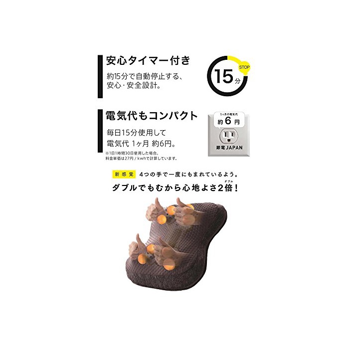 【소재】본체표지:폴리에스텔100% 본체:우레탄폼,ABS수지 맛사지부:폴리에스텔80%고, 레이온10%고, 폴리우레탄10% 【전원 전압】입력:100V 50/60Hz 1.2A 출력:DC12V 2.5A