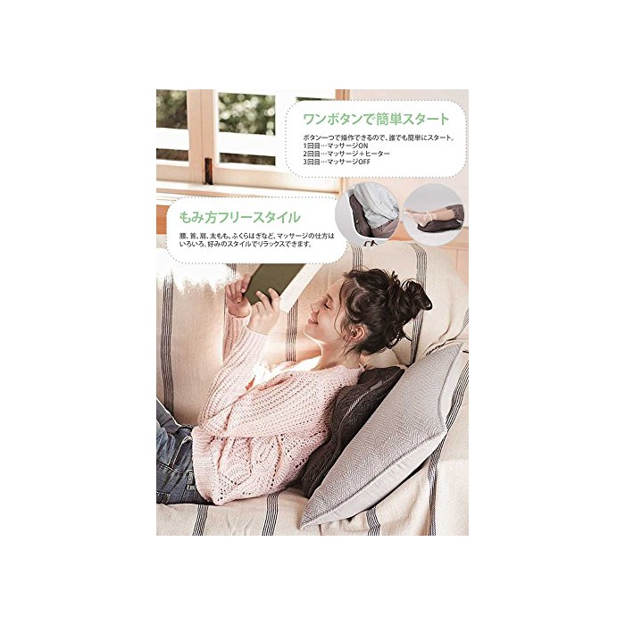 【주의】본품은 본체 만의 판매 입니다.카 어댑터,교환 커버는 부속 하고 있지 않습니다.1회의 사용은 15 분이내로 하십시오.또한동일 개소에의 연속 사용은 피해 하십시오.사용중 신체에 이상을 느낌 서게 됨은 곧바로 사용을 중지 하고, 의사로 상담 해 하십시오.유아나 어린 아드님에게 사용시키거나,본체에 놀게 하거나,위에 얹거나 하지 마십시오.사용 전에도 봐 옥커버를 뜯고, 맛사지부의 봉제 찢어짐이 없는지를 확인해 하십시오.찢어지는 경우는 사용 하지 마십시오.다음 사람은 사용 하지 마십시오.증상을 악화 시킬 우려가 있습니다.(의사에게서 맛사지를 금지되어 있는 사람.예:혈전[##(춥다)마개]증,중증의 동맥류,급성 정맥류,각종 피부염,피부 감염증)