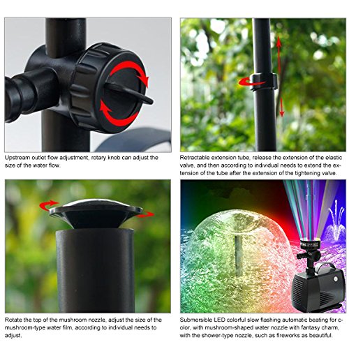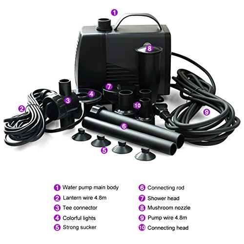 Elstey 45W 925GPH (3500L/H) Electric Submersible Water Pump 5 Color RGB With 15 LED Fountain Garden Pond Fish Tank Fountain Pool Lights