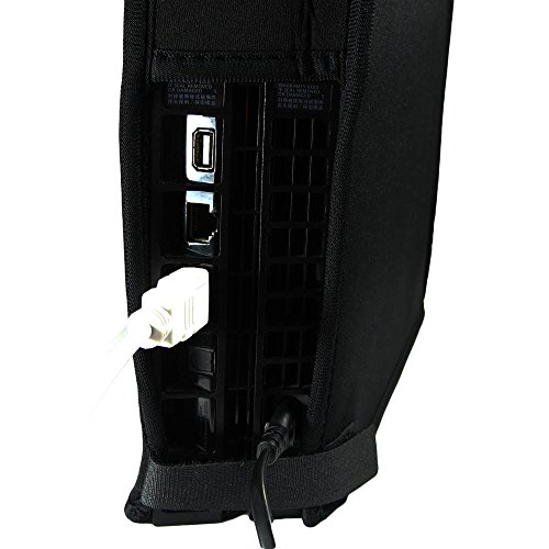 Speicially designed for the Sony PlayStation 4, protect your console from dust, ultraviolet, shock, liquids (Splashing), dirt, pet hair; made of neoprene, soft touch feeling,and flannel inside to protect the glossy surface of your console perfectly; Back cable panel cut design allows not to remove cables while using!