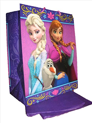 -. Binding : Toy -. Brand : Hallmark -. Color : Pink purple -. Department : Toys -. EAN : 0610290410221 -. Feature : Disney Licensed Product / Hallmark / Medium Size 10.5" X 13" X 5.75" / Comes with 4 Matching Sheets of Tissue Paper / Has a tag attached to handle with Olaf on one side -. IsAdultProduct : 0 -. Label : Hallmark -. Manufacturer : Hallmark -. PackageQuantity : 5 -. ProductGroup : Toy -. ProductTypeName : TOYS_AND_GAMES -. Publisher : Hallmark -. Size : Medium Large -. Studio : Hallmark -. Title : Disney's Frozen Purple Floral Giftbag -. UPC : 610290410221