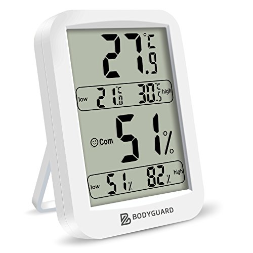 -. Feature : 【温湿度記憶】最高最低温湿度が自動的に記憶でき、一台を持つだけで、全面的にお生活を守れます。 / 【便利な3way置き方】 強力マグネット、壁掛け穴や折り畳みスタンドが付いているので、自宅の様々な場所に設置出来ます。お使い方とご習慣により、自由にお選びいただけます。 / 【手のひらサイズ】手のひらサイズ、コンパクトで、視認性の高いデジタル表示を採用し、遠くからでもはっきり見える大画面モデルです。数字が大きいで湿度と温度をはっきりと表示されます。 / 【健康管理】家族の健康に、インフルエンザや風邪などの予防対策に、お部屋の乾燥検査に、お肌のケア、カビ対策や熱中症対策などに役立ちます。 / 【使い心地良い】快適度アイコン付きで、一目を見るだけで、室内温湿度をしっかりと掌握できます。Bodyguardからご購入の場合、メーカーの1年間保証が付いています、1年保証期間内の故障は、当社に連絡を下されば責任を持って対応致します。