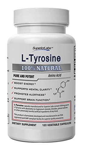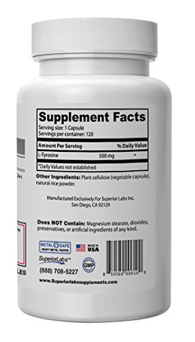 #1 L Tyrosine by Superior Labs - 100% Pure, 500mg, 120 Vegetable Capsules - Made In USA, 100% Money Back Guarantee