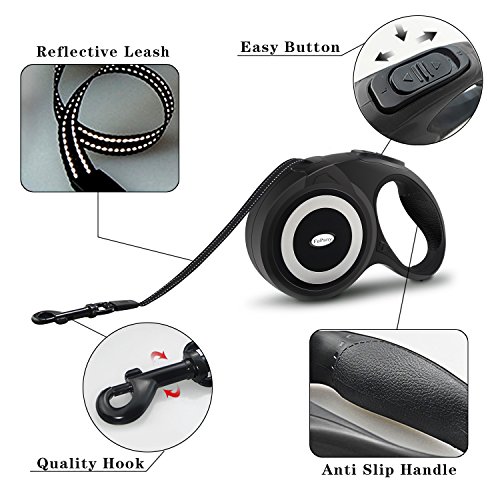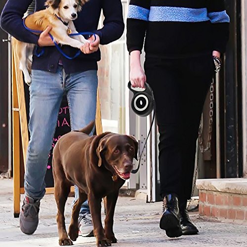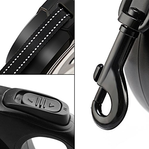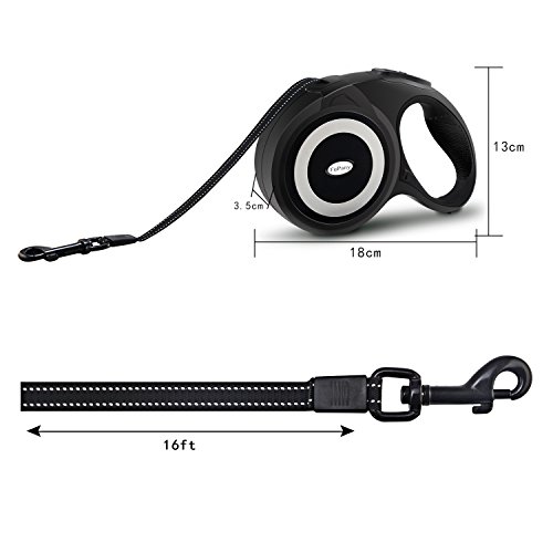 Features: Easy to use: just one Button for break and lock. Retractable: easily adjust the length as needed, extended up to 16ft, give perfect freedom to your pets and full control to you Strong and durable: made of ABS and nylon with high quality to prolong the leash life Comfortable: grip anti-slip handle comforts your hand, letting you enjoy the time with your pets