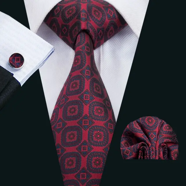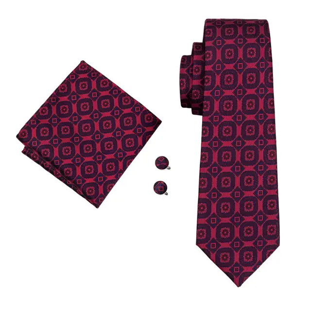 | [해외]LS-1461 배리. 좋아서 클래식 남성 넥타이 100% 다크 레드 참신 실크 넥타이 손수건 커프스 세트 남성 웨딩 파티 비즈니스 |