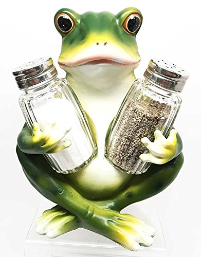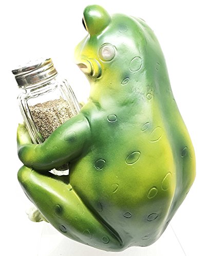 Cute Green Pond Frog Prince Hugging Spices Salt Pepper Shaker Holder Figurine