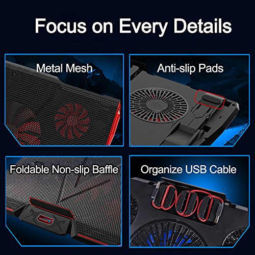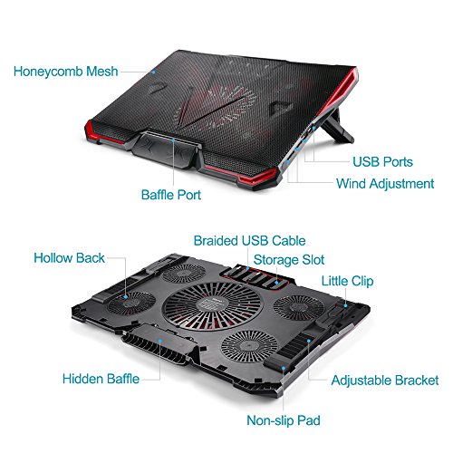 -. Feature : ADJUSTABLE WIND SPEED: Our Laptop Cooler offers 7 levels of cooling capability that easily surpasses that of every other cooling pad. Accommodate laptops ranging from 13" to 17" in size. / ULTRA-QUIET FANS: Five ultra-quiet fans create a noise-free environment for you. / ADJUSTABLE VIEWING ANGLE: You can get an optimal view angle while playing games, or typing. / EXTRA USB PORTS: Two extra USB port on the fan for you to power other devices. / RELIABLE PURCHASING: Any questions or disatisfactions with your purchase, please kindly let us know, ElementDigital guarantee you replacement or refund within 180 Days, and Lifetime Warranty. Clicking the Yellow "ADD TO CART BUTTON" Above, it's yours today.