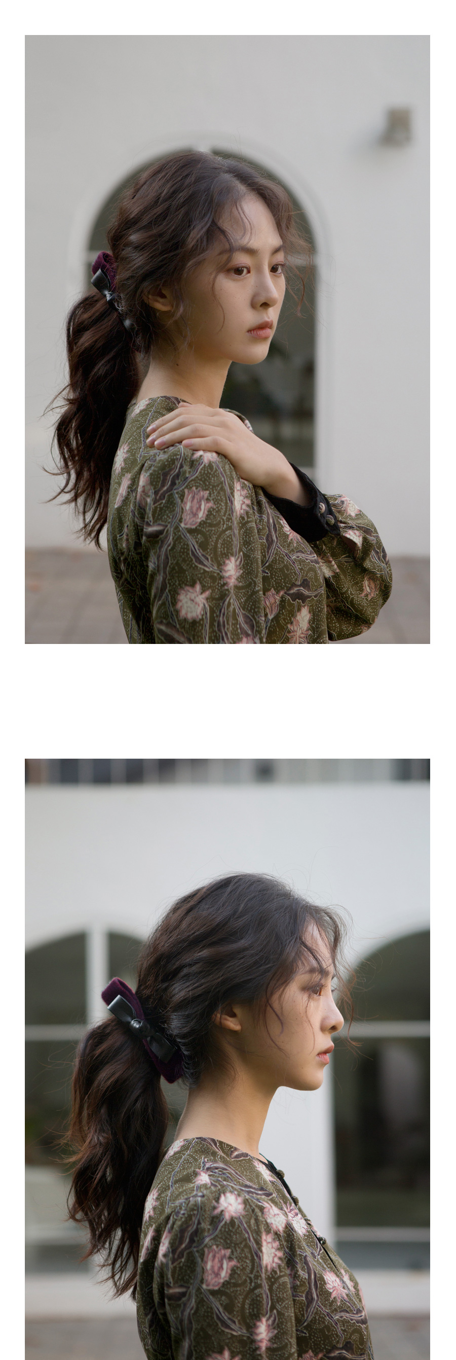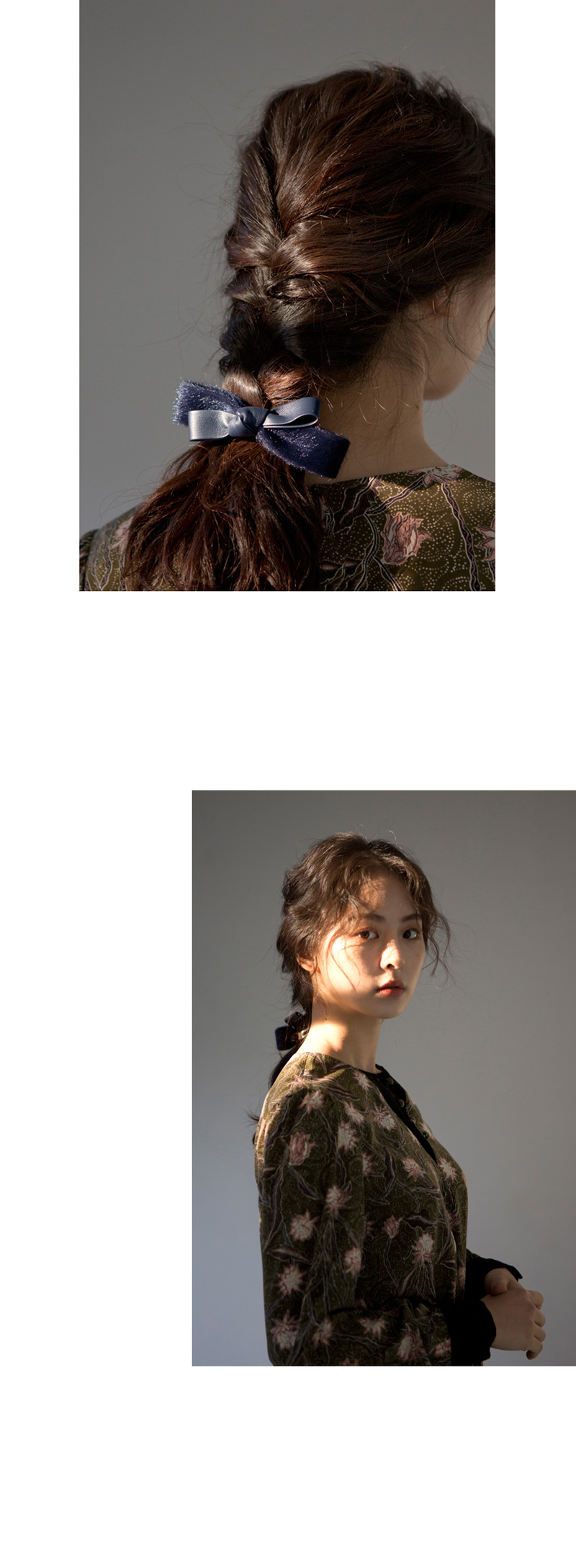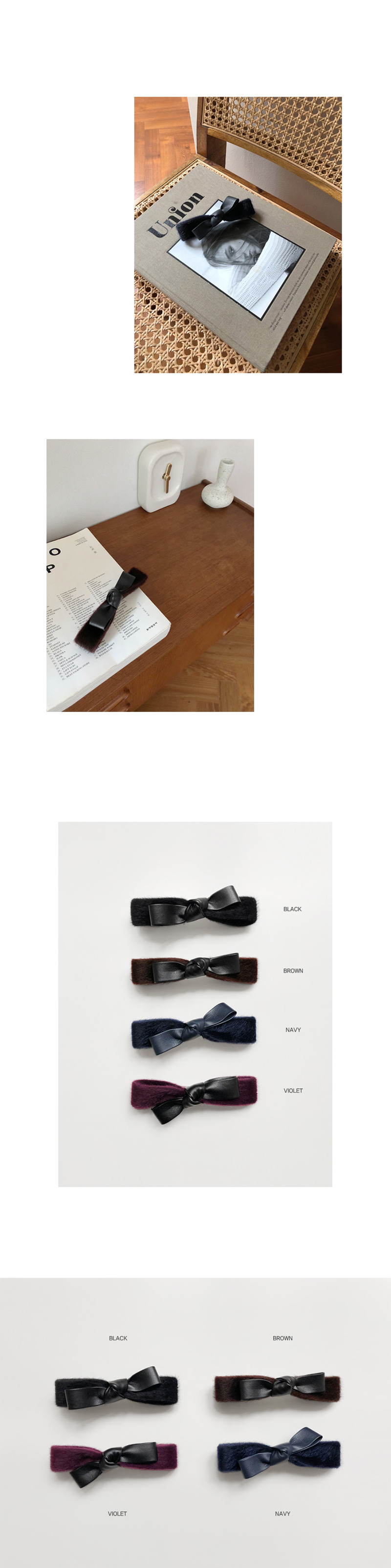 송치와 인조가죽으로 제작된 볼륨감 있는 리본 핀입니다.