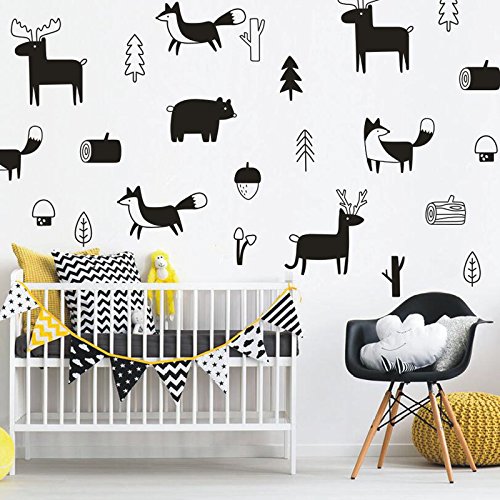 WALL VINYL STICKER DECAL DECOR NURSERY. Adhesive Forest Animals for Kids Baby Nordic Bedroom Decoration