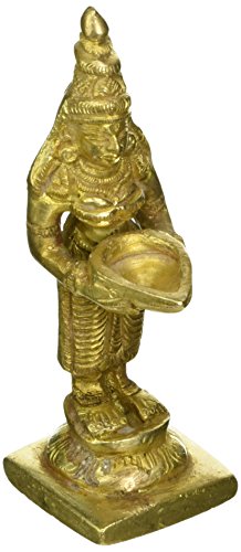 Ganges India Brass Carved Statue "Lady Holding Oil Lamp"