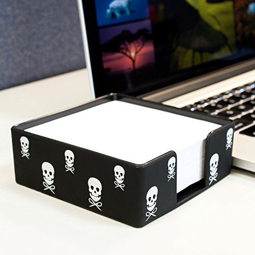 Zodaca [Skull Pattern] Soft Touch Desktop Square Memo Pad Note Holder 4 x 4 inch, 340 Sheets Capacity, Black with White Skull