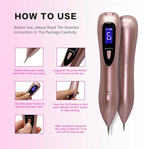 - EASY TO USE – Please give this beauty pen a chance, it’s very easy to use. Just put the needle on, turn on the mole remover, choose the strength you want. Keep pressing the out button, and tap with the pen to work through the mole. You'll find the pigments will be gone instantly. Please take some time to practice on your feet or arms with 1 strength levels follow the instructions.
