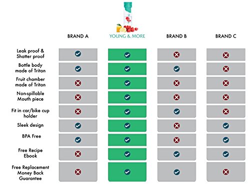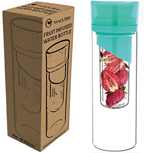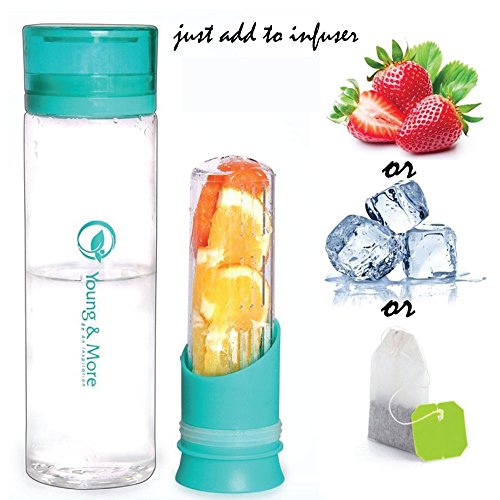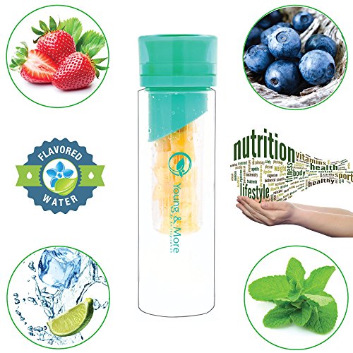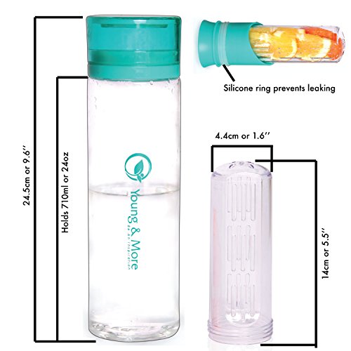 Infuser Water Bottle 24 Oz - Made with TRITAN BPA Free - Young More N2589 - Free Recipe Ebook...
