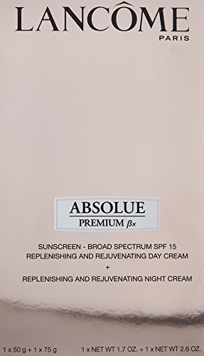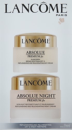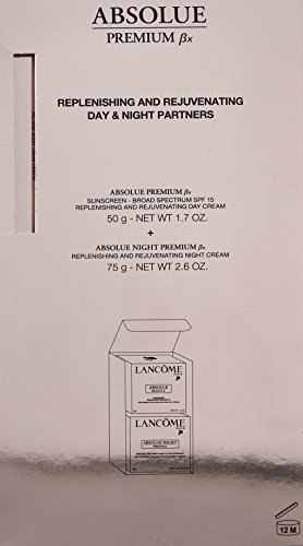 Absolue Premium Bx Replenishing and Rejuvenating Day-Night Partners Set by Lancome for Unisex 2 Pc Set 1.7oz Absolue Premium Bx Replenishing and Rejuvenating Day Cream, 2.6oz Absolue Night Premium Bx Replenishing and Rejuvenating Night Cream.