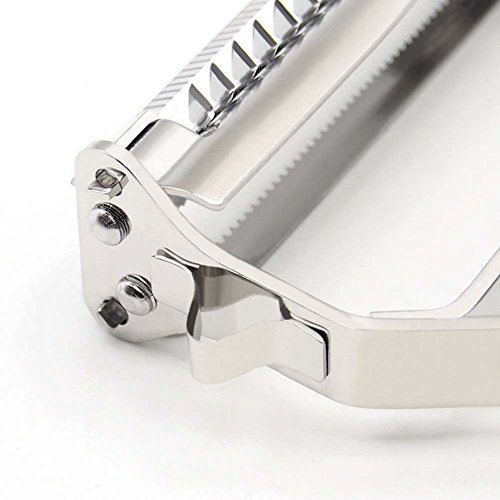 - HIGH QUALITY: Brushed metal finish adds to your classic kitchen style. The super sharp blades are constructed of 100% stainless steel for long-lasting use. Guaranteed against manufacturer defects for 2 years. During normal use, gradual blade wear is expected over the lifetime of this kitchen tool. SAFETY FIRST: This kitchen tool has very sharp blades. Hold vegetables down on a cutting board using a fork instead of holding in your hand.