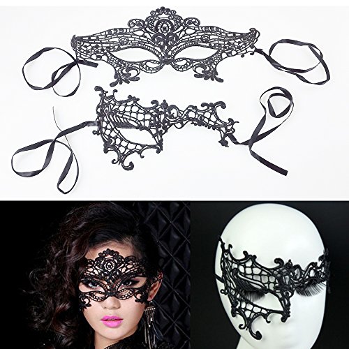 yueton Pack of 2 Sexy Girl Lace Eye Mask for Halloween Masquerade Party Bars (2 different Pattern)