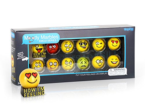 Studio : MegaFun USA Publisher : MegaFun USA Binding : Toy Product Description MegaFun USA has a passion for quality and creativity. The 100% glass marble sets are durable and built to last. These nostalgic toys brings a modern twist with the iconic emoji designs. Display how you are feelings with emojis, without even getting on your phone. Recommended for ages 5 years and up; Package dimensions: 4.25' H x 10' L x 2' W. 0