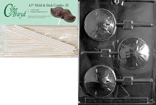 Cybrtrayd 45St25-N038 Sand Dollar Lolly Nautical Chocolate Candy Mold with 25-Pack 4.5-Inch Lollipop Sticks
