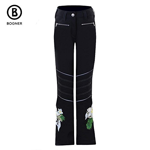 Binding : Apparel Product Description The Bogner Bekki Softshell Ski Pant brings sophisticated style to your little fashionista The stretch softshell design is just like what the grown ups wear but in the kids version its accented with bright floral embroideries at the cuffs A fleece lining adds warmth and 10K waterproof fabric ensures shell stay dry The fabric stretches making the Bekki Pant very comfortable to wear A high back keeps out cold air and snow Specs Fabric Rating 10K Waterproof / 3K Breathable Shell Material 88pct polyester/12pct spandex softshell fabric Lining Material Fleece lining Insulation Fleece lining Features High back waist for added protection against snow and cold air Padded knee for comfort when kneeling Fleece lining for warmth and comfort Stretch fabric for easy movement Boot gaiters fit over boots to keep out snow Zippered cuffs open to fit around ski boots 2 zippered waist pockets on exterior Floral embroideries on lower legs 0