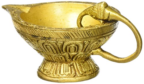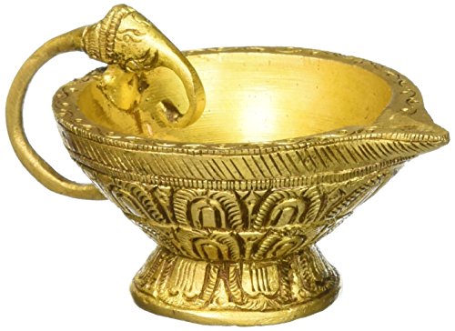 Gangesindia Brass Puja Diya Carved Lamp with Gaja Mukha Elephant Face Handlle