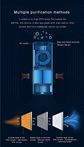 - 3 FILTRATION STAGES : Ideal for people who suffer from allergies, nasal stuffiness,cough,sneezing,asthma,etc;Primary Filter + HEPA Filter + Activated Carbon reduce 99.9% of Allergens,Dust,Pollen,Smoke,Odors,Pet Dander,Formaldehyde,Mold spores and TVOC