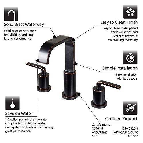 Decor Star WPC03-TO Contemporary Bathroom Vanity Sink Widespread Lavatory Faucet UPC cUPC NSF AB 1953 Lead Free Oil Rubbed Bronze