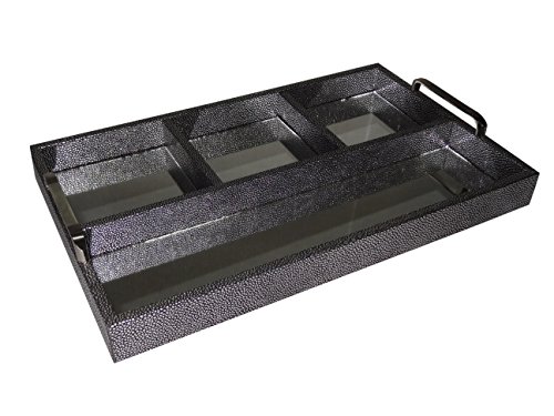 - Arriving in a rectangular shape with 4 compartments, each tray features center mirrors and a silver shagreen design and raised, chrome handles