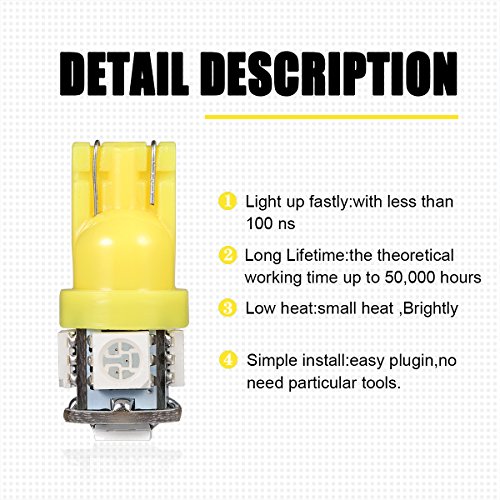 - New T10 2323 1W LED Light Bulbs. Low temperature, low power consumption,Which are much brighter than the stock OEM yellowish tungsten lamps. - These bulbs can be used on many light applications for your vehicle. - Immediate response and vibration resistant. Installs easily in just minutes - no tools needed.
