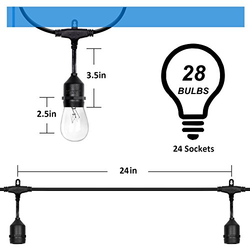 - [ Ideal Outdoor Illumination] 28 pack of 120V 11W S14 E26 bulbs for 24 sockets and 4 extra bulbs produce warm light, making it ideal illumination anywhere. Formulated PVC socket forms a tight weatherproof seal around the bulb. Each bulbs is packaged with special design not to get damaged during transit.