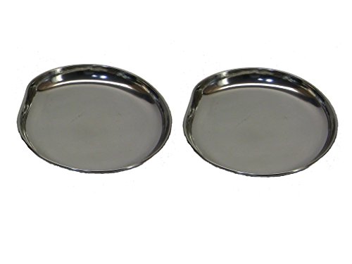 Product Description These durable plates and stylish mango shape plates (set of 2) are made of high quality stainless steel. Use it for your children's meals, or for your own snacks. It's a great and healthy alternative to plastic and other disposable plates. Each stainless steel plate measures length 6.75, width 6.25 and height 1 inches. Keep them on your table inside for durability during your child's dinner, or bring them with you for outside eating occasions like parties or camping. 0