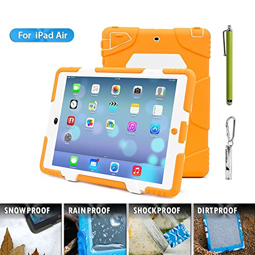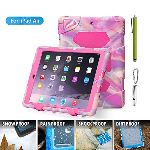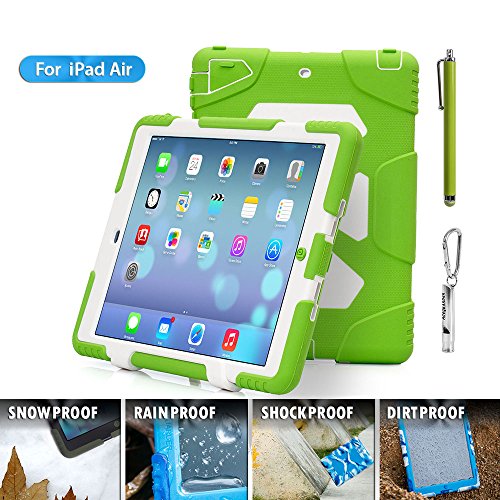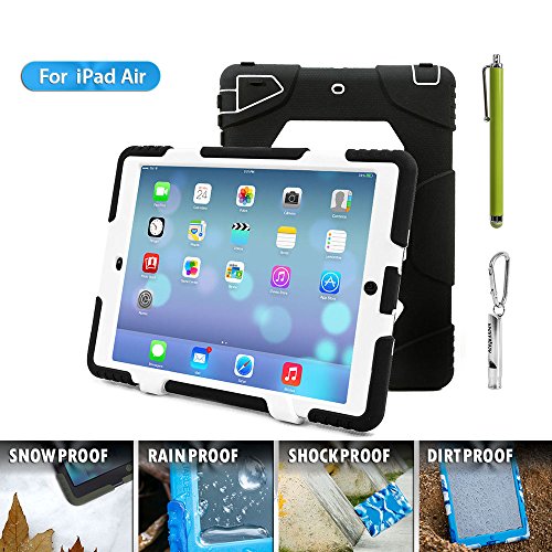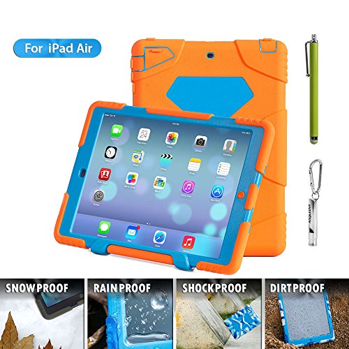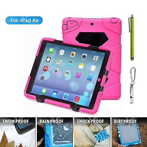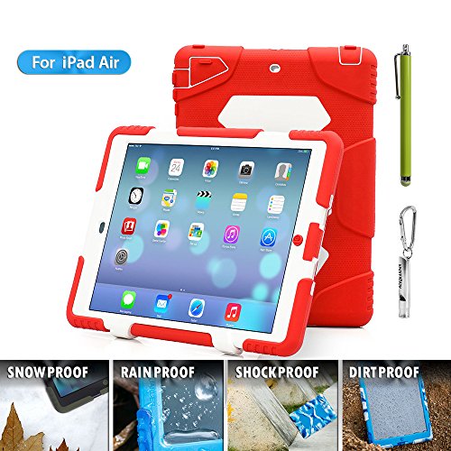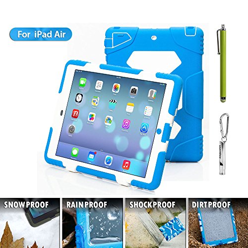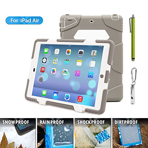 1.ACEGUARDER ipad air 5 case with stand(Only fit for ipad air 5) 2.Manufacturing Material: environmental protection silicone, environmental PC, shock absorption pad, IP6 waterproof stickers.Material absolutely harmless. Non-irritating odor.Market similar products using industrial silicone inferior. PC material are not using eco-friendly materials. There are hazards to humans and the environment. No rain function, because of inferior products do not use expensive waterproof stickers. Japanese imports of internal use professional shock absorption pad.Inferior products using plastic foam cotton. Not tested by professional-grade shock protection products. 3.Sand/Dust Test:3hrs@up to 59 ft/sec(18m/sec) (The seal connection helps to isolate the sand and dust blowing in the wind);Shock/Drop Test:internal frame minimizes shock/dorp damage (Rigid frame will shock/drop damage to minimum);Vibration Test:18hrs at 20-2000hz(the silica gel protective layer provide cushioning protection);Wind/Rain Test:7.8km/h(about 2000mm/s) (screen protection complete can defend with the wind blowing rain) 4.Used for Kids,outdoor Sports, Travel, Adventure.Gifts Carabiner+Whistle+capacitor pen handwriting(ACEGUARDER Brand) 5.Gifts Carabiner+whistle+capacitor Pen Handwriting(ACEGUARDER)Feature