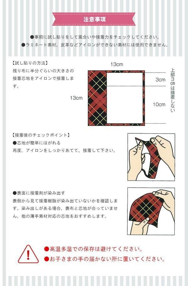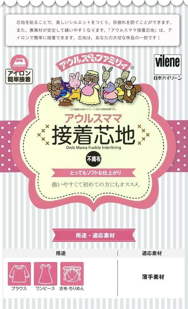薄手素材に最適な不織布芯地です。ソフトでやさしい風合いに仕上がります。寸法安定性に優れた不織布芯地は、初めての方にもおすすめです。 |