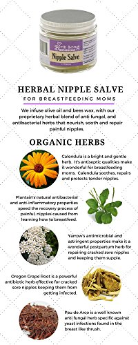 -. Feature : MAKES NURSING YOUR BABY MORE COMFORTABLE Our herbal nipple balm soothes and heals dry, sore, cracked and tender breasts, that can make breast feeding uncomfortable. / ENJOY THE BEAUTY OF BREASTFEEDING WITHOUT THE PAIN Birth Song's naturally pure ointment helps heal your skin and allows you to cherish this amazing personal bonding time between momma and baby. / PERFECTLY HEALTHY ALTERNATIVE Some medications and cremes contain chemicals like lanolin that can be harmful to babies, but our nipple salve is made from herbal and organic ingredients that are completely safe for ingestion. / NOT JUST FOR NIPPLES Our nipple salve works great as a topical treatment for your lips and other dry areas, and its smooth texture makes it easy to apply. / DEDICATED TO ENHANCING THE WELL-BEING AND VITALITY OF WOMEN Birth Song Botanicals strives to produce high-quality herbal products that are naturally safe for pregnant women, breastfeeding moms and their families.