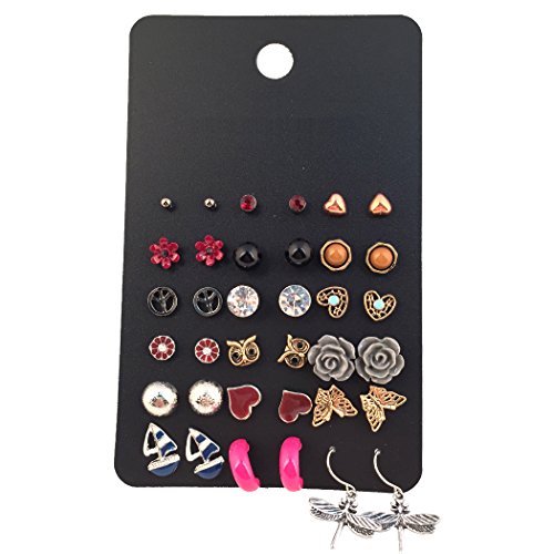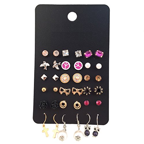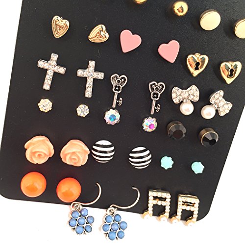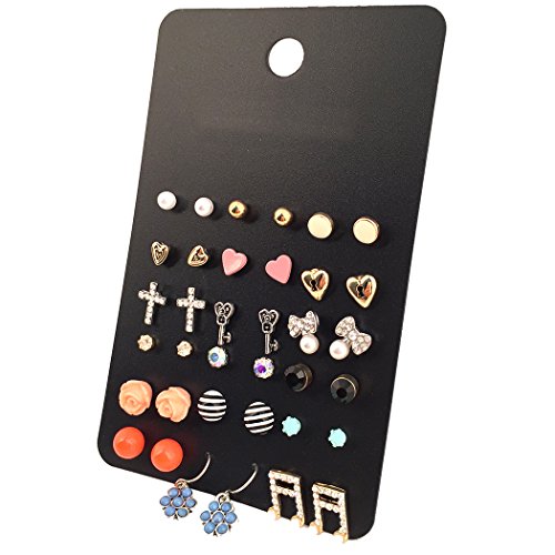 2.Items Includes 18 Pairs Assorted Multiple Small Stud Earring, Brand Jewelry Pouch